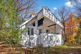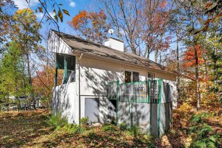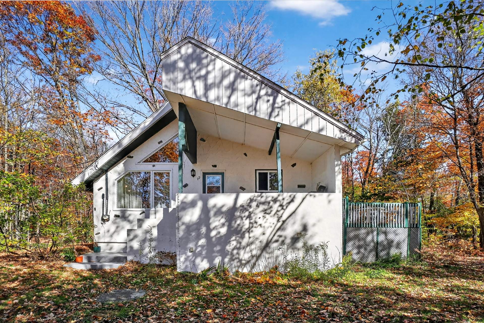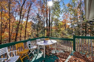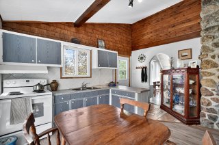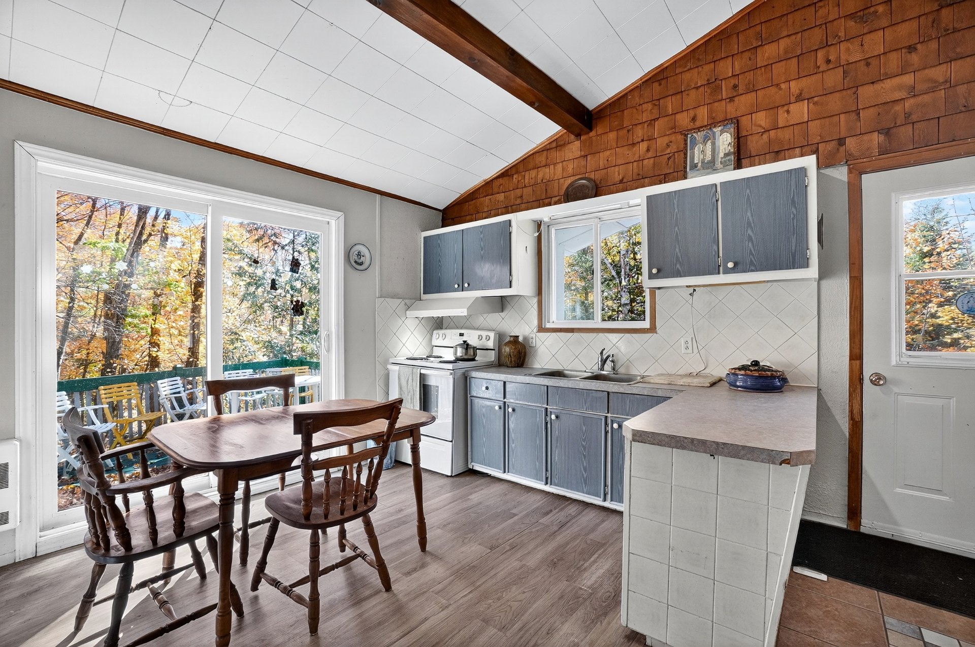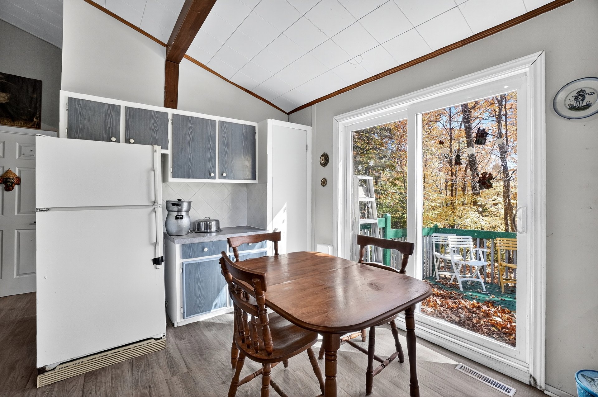 rangement additionnel, tandis que la cour arrière boisée